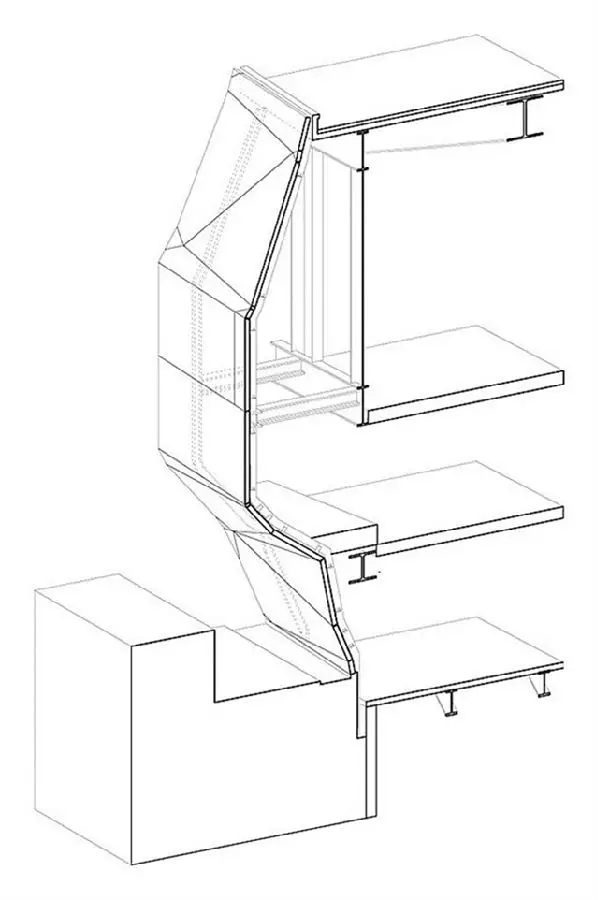 从2009年3月开始,经历了一年多的时间,承包商在一个预制工厂内生产浇筑墙板。他们利用一个光滑的,钢铁表面的桌子作为模板,每一块板都分两层浇筑,在铺上钢筋结构后进行第二次浇筑。这样的过程确保混凝土外墙免收特拉维夫当地盐空气的腐蚀。 面板的背面包括了钢板,并以此作为与竖向钢筋支持系统的连接点,并锚定在建筑的空腹桁架结构上。利用起重机,工人把重达9吨的预制墙板吊起,正确放好后,并从后调整位置,然后把预埋钢板焊接到支架上。最后,他们用一种特殊的密封胶槽来密封每块板之间大约一英寸宽的连接节点。