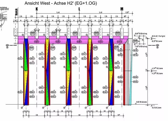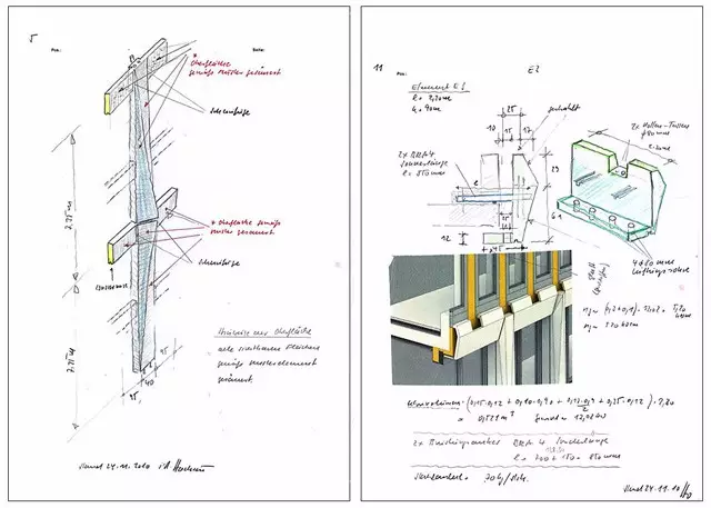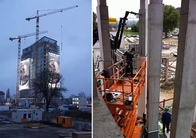 这座为法国能源公司道达尔设计的建筑完成于2012年秋季,这座独特的高层建筑为道达尔德国总部的500多名员工提供了明确的标识感和身份认同。设计在与业主,承租人和城市规划部门的交流中产生,68米高的建筑共18层,功能上包括地面层的大厅、酒馆,上层的办公以及设备层。德国可持续建筑学会早期的目标是用可持续建筑的观念指导方案设计,这些目标主要是通过智能表皮系统和能源再利用实现。建筑光线充足,具有自然通风,两层的裙房柱网与地下室柱网相一致,形成封闭的或者开敞的空间,包括了大厅和北面的走廊,像是把上层建筑放大了一圈,这些空间成为大厅与外部空间的过渡区。为了形成动态的外观并表明道达尔作为经营能源动力的公司性质,建筑的外部承重表皮由具有不同刻面的预制混凝土构件组成以形成变化的表皮。表皮格构利用增加构件深度和雕塑感来强调建筑的竖向线条。网格的模式交错生成,像一道厚帘幕包裹住整个建筑。也是内部私密空间与外部公共空间的过度。外承重墙与内核心筒连接,在室内形成了无柱的开阔空间。