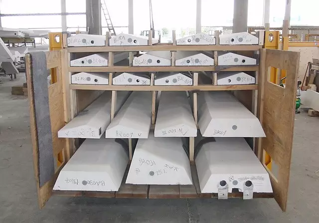 承重外墙是由多种表面的预制混凝土构件组成,给建筑缔造了一种不断变化的表皮样式。这些不计其数的预制构件最终组合成了一个T字形的墙板,高达7.35米,宽2.4米。这种混凝土材料的巨大优势是他们的高效防火性能,让它们能有效保护包裹在材料内的钢筋。